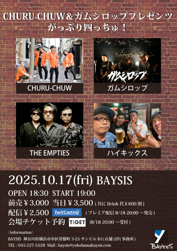 出演 : CHURU-CHUW / ガムシロップ / THE EMPTIES / ハイキックス